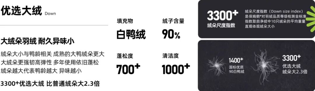 “老国标只要求标注含绒量,现在要求更细了。”她解释道,绒子含量超过50%就可称为羽绒服,有些品牌只做含量70%-75%的。