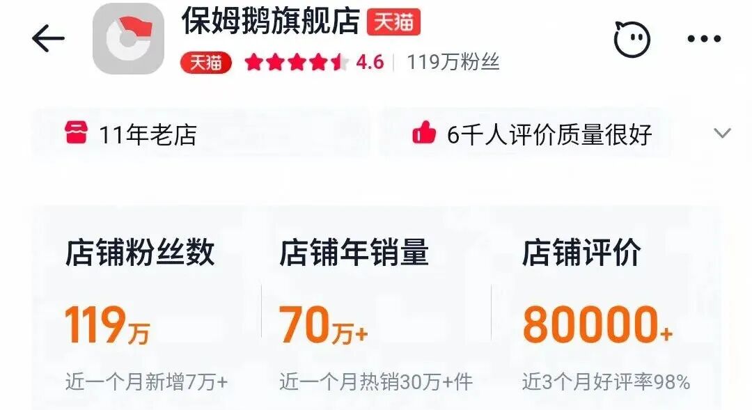与头部羽绒服品牌以及全品类童装品牌相比,保姆鹅的知名度不算高。李士战就在线下的户外广告上,多次打出“天猫单品销量No.1”来背书。
